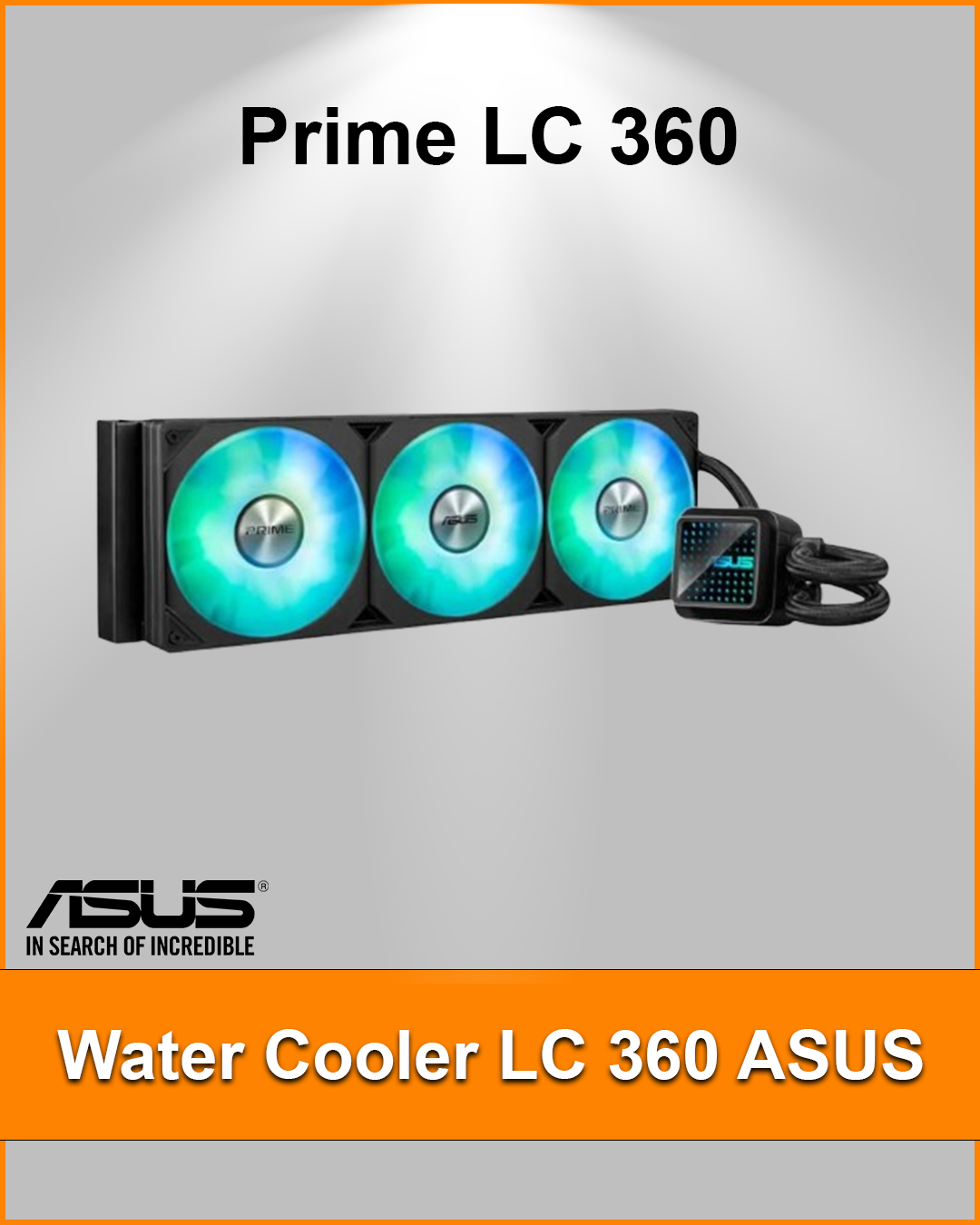 Prime LC ARGB all-in-one CPU liquid cooler with specially designed CPU contact area and finned channels, water block with infinity mirror lens options, pre-installed ARGB fans and Aura lighting.